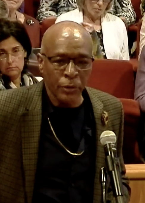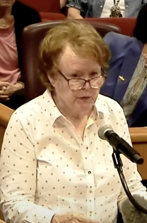 One of our Action Team members, Becky Delaune, making a public comment at Tarrant County Commissioners Court in 2023.