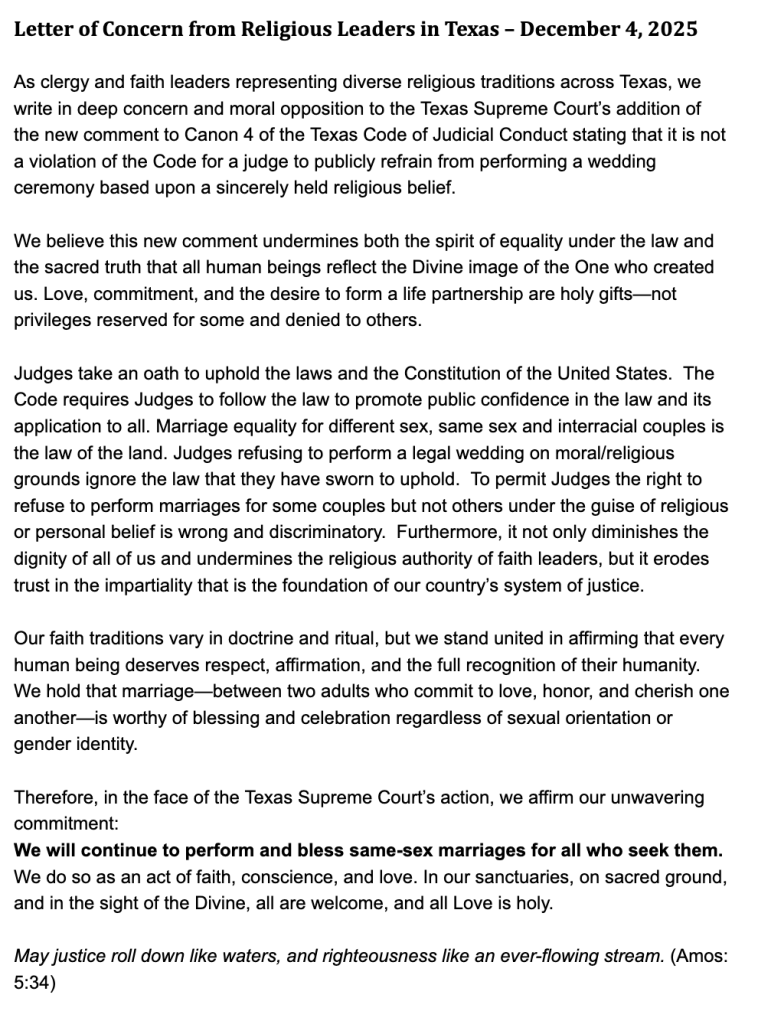 And if you know of any clergy in Texas who might also be interested in signing on, please forward them this statement.